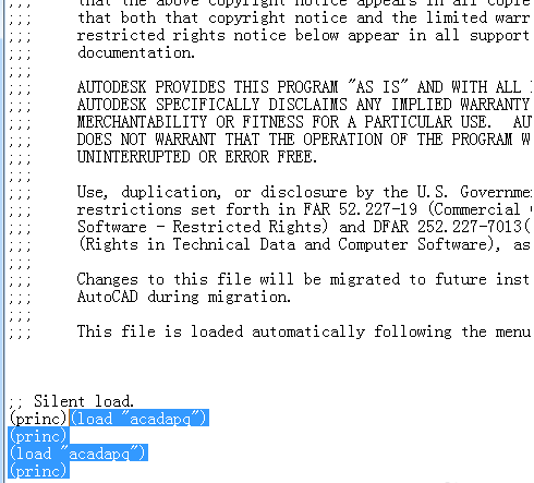 6找到acad.mnl后用记事本打开,如图后面可以看到多了很多加载项,统统删掉。