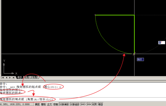 6.如图,在起点中,可以输入角度制单位。以绘制单开门为例。起点为180~-90度。