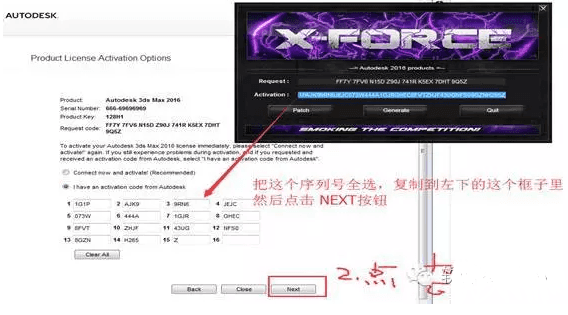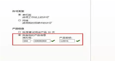 5、3Dmax2016的序列号和密匙,输入3dmax2016的序列号:666-69696969,产品密匙:128H1,然后点击下一步