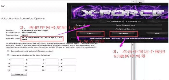 13、先点击“patch”弹出“successfully patched再把序列号复制request code到注册机中,点击generate得到激活码