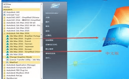 15、打开开始菜单,可以选择中文与英文的软件界面。